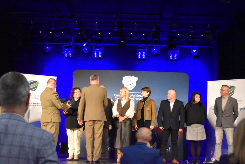 Podczas uroczystej gali Szef Centralnego Wojskowego Centrum Rekrutacji wręczył medale „Za zasługi dla obronności kraju” oraz wyróżnienia dla szkół, które osiągnęły najlepsze wyniki w rekrutacji absolwentów OPW do Sił Zbrojnych RP w roku 2025. Z ogromną dumą informujemy, że w gronie wyróżnionych znalazła się nasza szkoła. Wyróżnienie oraz podziękowania z rąk Szefa CWCR odebrała pani Monika Lipka – koordynator i wychowawca klas OPW w naszej szkole.