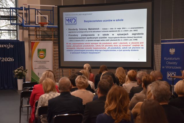1 grudnia 2025 roku w Centrum Edukacji Zawodowej i Ustawicznej „Kopernik” w Wyszkowie odbyła się narada dyrektorów przedszkoli, szkół i placówek oświatowych z Powiatu Wyszkowskiego oraz Powiatu Ostrowskiego. Spotkanie zostało zorganizowane przez Kuratorium Oświaty w Warszawie – Delegaturę w Ostrołęce. Obradom przewodniczyła Dyrektor Delegatury Teresa Michalak, która powitała wszystkich uczestników i przedstawiła główne założenia narady.
