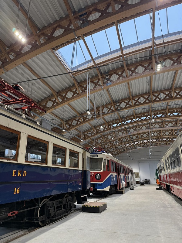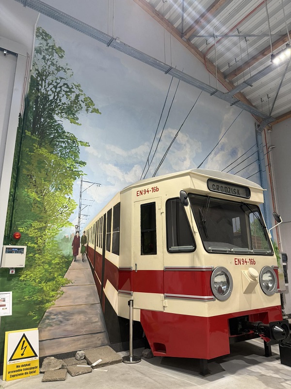 Drugim punktem wycieczki było zwiedzanie Izby Tradycji Warszawskiej Kolei Dojazdowej w Grodzisku Mazowieckim. Uczniowie obejrzeli zbiory dokumentujące historię linii EKD/WKD: zdjęcia, bilety, dokumenty, elementy wyposażenia pracowników oraz akcesoria z dawnego taboru. Duże zainteresowanie wzbudziły makiety stacji w Grodzisku Mazowieckim oraz odtworzone stanowisko kasowe i biuro naczelnika stacji. Ekspozycja pozwoliła uczniom poznać rozwój lokalnego transportu kolejowego i zobaczyć unikatowe pojazdy wykorzystywane na przestrzeni lat. Wizyta studyjna była dla uczniów cennym doświadczeniem, łączącym nowoczesną logistykę z historią regionalnego transportu kolejowego.
