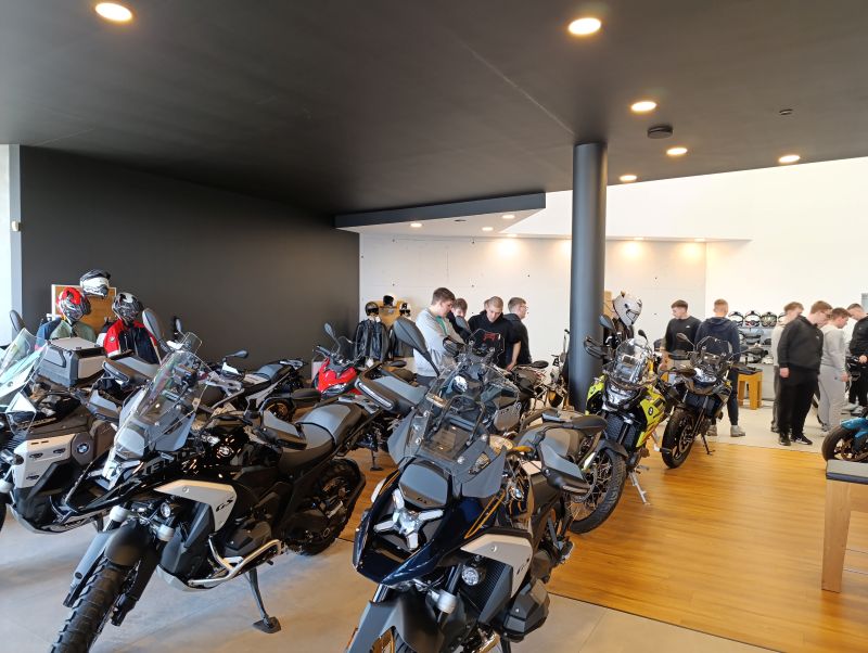 Naszą podróż rozpoczęliśmy od autoryzowanego salonu BMW - Dealer BMW Auto Fus Group Białystok. Najpierw zwiedzaliśmy część ekspozycyjną. Mieliśmy tam okazję zobaczyć najnowsze modele samochodów i motocykli, jak również innowacyjne samochody elektryczne. Pracownicy salonu w niezwykle ciekawy sposób opowiedzieli nam o systemach bezpieczeństwa i autonomicznej jazdy, napędach hybrydowych oraz elektrycznych. Ponadto dowiedzieliśmy się, że sprzedaż w salonach BMW opiera się na profesjonalnym doradztwie, obsłudze klienta klasy premium oraz kompleksowych usługach finansowych. Największą atrakcją jednak okazała się wizyta w strefie serwisowej. To tutaj uczniowie mogli zobaczyć, jak wygląda profesjonalna diagnostyka komputerowa i serwisowanie pojazdów klasy premium.
