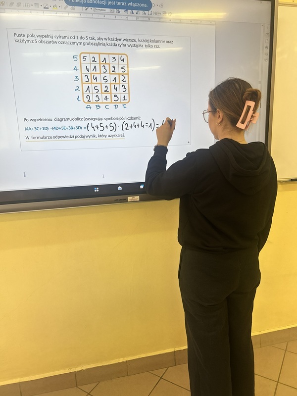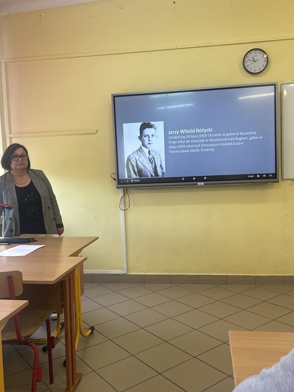 Uczniowie klasy 3WZb wraz z panią Mariolą Kurzątek również zapoznali się z postacią Jerzego Różyckiego, poznali jego życiorys i dowiedzieli się jak ogromne znaczenie miało złamanie szyfru Enigmy na losy II wojny światowej oraz jak ważną rolę odegrała w tym matematyka. Następnie młodzi odkrywcy rozwiązywali zadania logiczne, łamigłówki matematyczne, zadania związane z kodowaniem i szyfrowaniem różnych wyrazów.