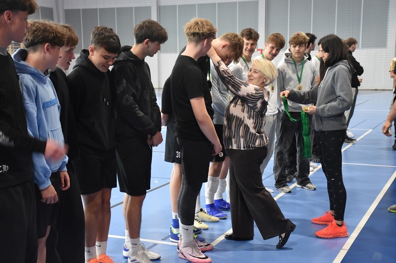 Pamiątkowe medale dla uczestników wręczyła Dyrektor Monika Kluczek, podkreślając znaczenie aktywnego udziału młodzieży w obchodach rocznicowych oraz wartość łączenia sportu z nauką.