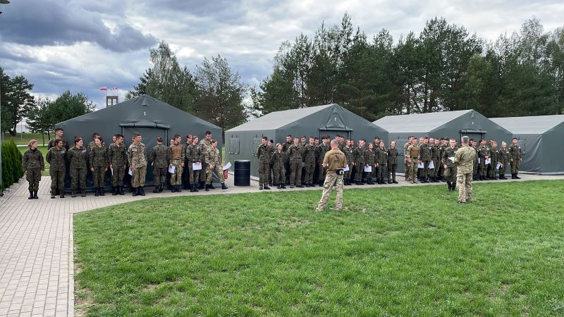 „Już niestety po obozie, a więc tak: w środę oczywiście test sprawnościowy, teorie: szkolenie strzeleckie oraz musztra. W czwartek tor przeszkód, topografia, strzelanie z AK, czyszczenie broni, musztra i walka wręcz. W piątek topografia później walka wręcz, tor przeszkód oraz survival czyli bytowanie w lesie. W sobotę również topografia i wymarsz w las (oczywiście bez zguby by się nie obyło🤭). Później tor przeszkód strzelanie z Glocka i rozkładnie grota oraz samoobrona. W niedziele wyjazd do kościoła, strzelanie z grota, paintball. W poniedziałek pętla taktyczna (czas bardzo dobry jedne z najlepszych zajęć) później teorie linowe sprzątanie terenu po bytowaniu, samoobrona, ognisko i dyskoteka. Dziś egzamin z wf, sprzątnie rejonów i zjazdy na linie z wierzy. Były również alarmy w nocy. Był też marsz nocny.