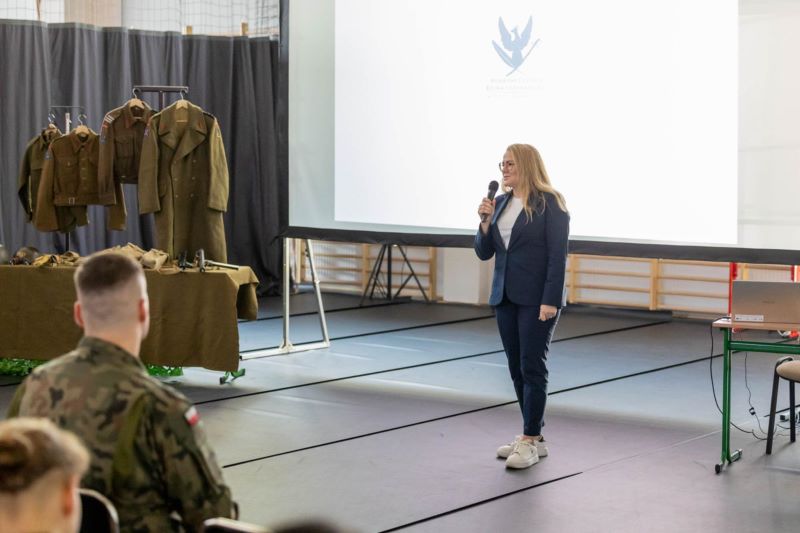 Pani dr Anna Pastorek zaprezentowała wykład pt. „Generał Maczek i jego żołnierze”, przybliżający postać legendarnego dowódcy 1. Dywizji Pancernej oraz jego wkład w walkę o wolność Polski i Europy.