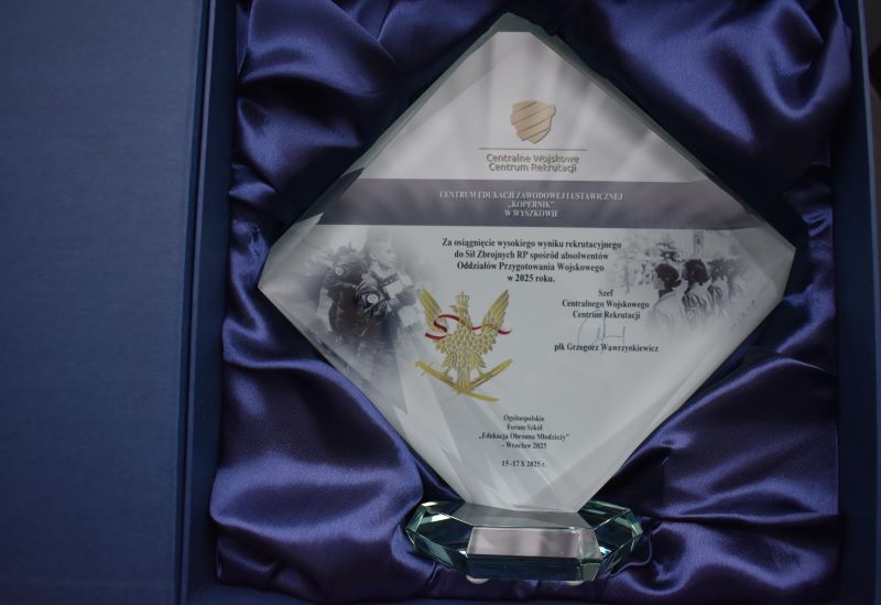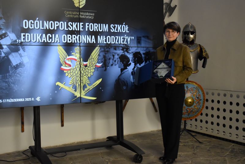 Podczas uroczystej gali Szef Centralnego Wojskowego Centrum Rekrutacji wręczył medale „Za zasługi dla obronności kraju” oraz wyróżnienia dla szkół, które osiągnęły najlepsze wyniki w rekrutacji absolwentów OPW do Sił Zbrojnych RP w roku 2025. Z ogromną dumą informujemy, że w gronie wyróżnionych znalazła się nasza szkoła. Wyróżnienie oraz podziękowania z rąk Szefa CWCR odebrała pani Monika Lipka – koordynator i wychowawca klas OPW w naszej szkole.