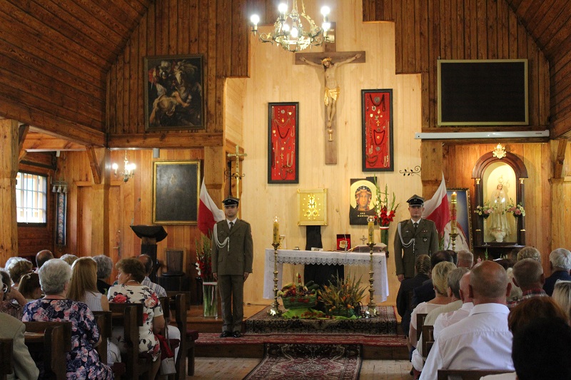 Następnie delegacje, poczty sztandarowe, mieszkańcy, prowadzeni przez Orkiestrę Reprezentacyjną Ligi Morskiej i Rzecznej przeszli w miejsce historycznego obelisku ku czci pamięci żołnierzy poległych w obronie Ojczyzny w 1920 roku. Obelisk upamiętnia siedmiu Polaków zamordowanych w okrutny sposób 17 sierpnia 1920 r. przez sowiecką czerezwyczajkę. Po odśpiewaniu hymnu odczytany został apel pamięci z udziałem naszych uczniów klas mundurowych. Licznie zgromadzone delegacje złożyły kwiaty i zapaliły znicze.