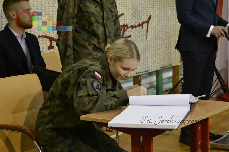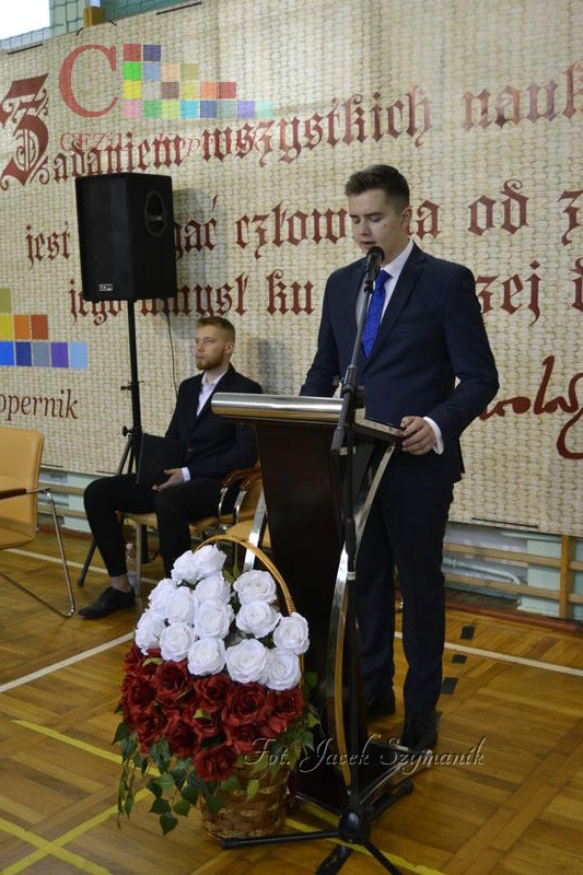 To doniosłe wydarzenie zostało poprzedzone wspólnym odśpiewaniem hymnu państwowego oraz hymnu szkoły, następnie wystąpieniem Dyrektor Centrum pani Moniki Kluczek, która kierując swe słowa do uczniów, podkreśliła jak ważnym momentem w ich życiu jest nauka w naszej szkole, którą wybrali. Pani dyrektor wyraziła również nadzieję, że „w naszej szkole uczniowie uzyskają nie tylko wiedzę, umiejętności, ale także życzliwość, zrozumienie, nowe przyjaźnie, które będą trwały przez długie lata.” Odniosła się również do zbliżającej się sto trzeciej rocznicy odzyskania niepodległości przez naszą Ojczyznę: „Dziś chylimy czoła przed wszystkimi bohaterami tamtych wydarzeń, dziękujemy za ofiarę i trud kilku pokoleń naszych rodaków. Wielki to zaszczyt i równie wielki obowiązek, naszej codziennej pracy przyświecają wartości "Bóg, honor, ojczyzna" - tacy właśnie jesteśmy i będziemy niezależnie od tego, które okno historii otworzymy zawsze oddajemy i będziemy oddawać cześć ludziom, którzy oddali życie w obronie tego, co kochali najbardziej. Ludziom, którzy odeszli już na wieczną wartę.”