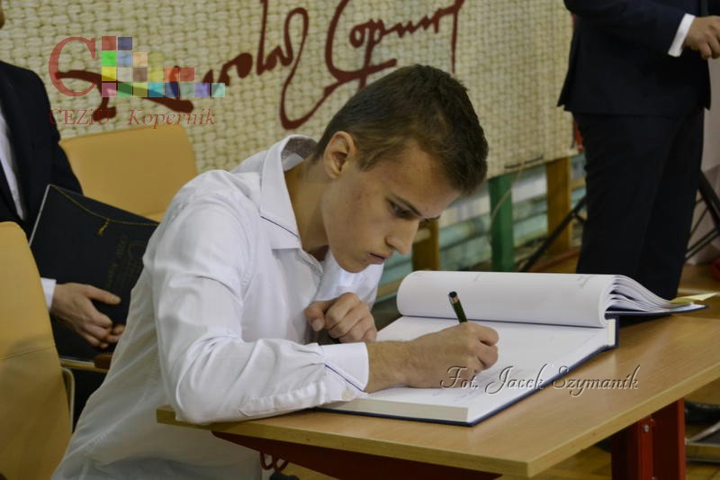 Po ślubowaniu przedstawiciele klas wspólnie z wychowawcami i Panią dyrektor dokonali pamiątkowych wpisów do kroniki szkoły. Następnie w imieniu uczniów klas pierwszych głos zabrał uczeń Technikum Pojazdów Samochodowych Jakub Krystman, natomiast w imieniu Samorządu Uczniowskiego Wiktoria Cichowska.