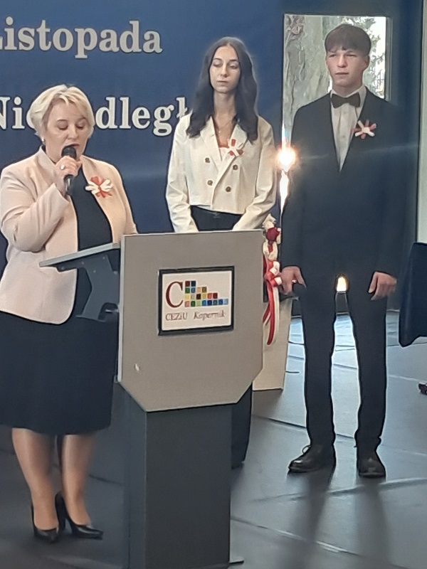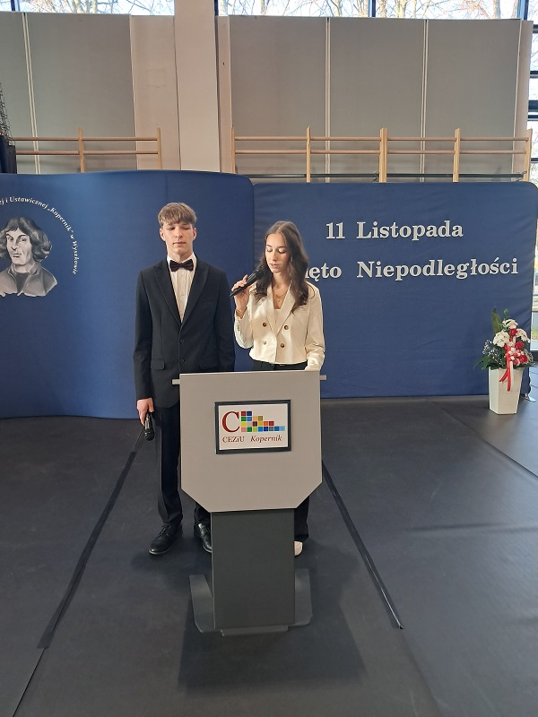 W Centrum Edukacji Zawodowej i Ustawicznej „Kopernik” w Wyszkowie młodzież uczciła 107. rocznicę odzyskania niepodległości podczas uroczystej akademii. Uroczystość poprowadzili Nikola Żuchowska i Michał Kuchta, wprowadzając wszystkich w atmosferę refleksji i patriotyzmu, podniosły nastrój, który towarzyszył każdemu momentowi spotkania.