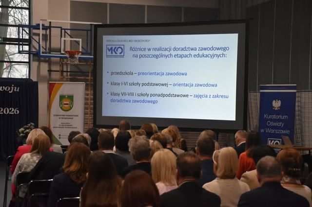 Z kolei pan Marian Grzegorczyk, starszy wizytator Kuratorium Oświaty, zaprezentował zagadnienia doradztwa zawodowego z perspektywy nadzoru pedagogicznego, akcentując konieczność spójnego i efektywnego systemu działań wspierających młodzież w podejmowaniu decyzji edukacyjno-zawodowych.