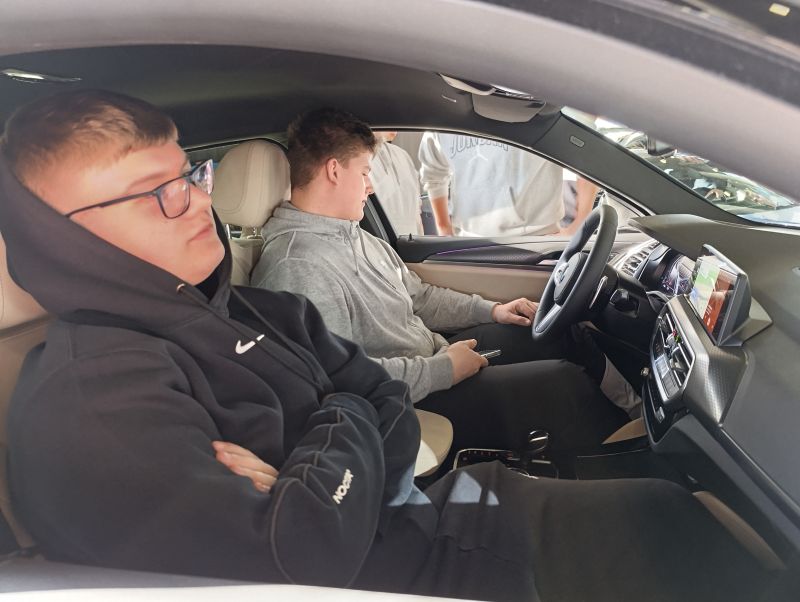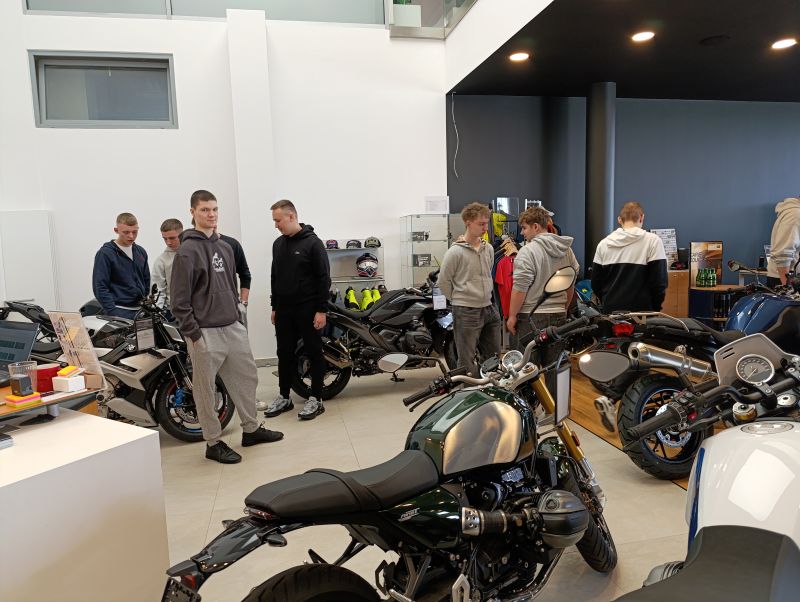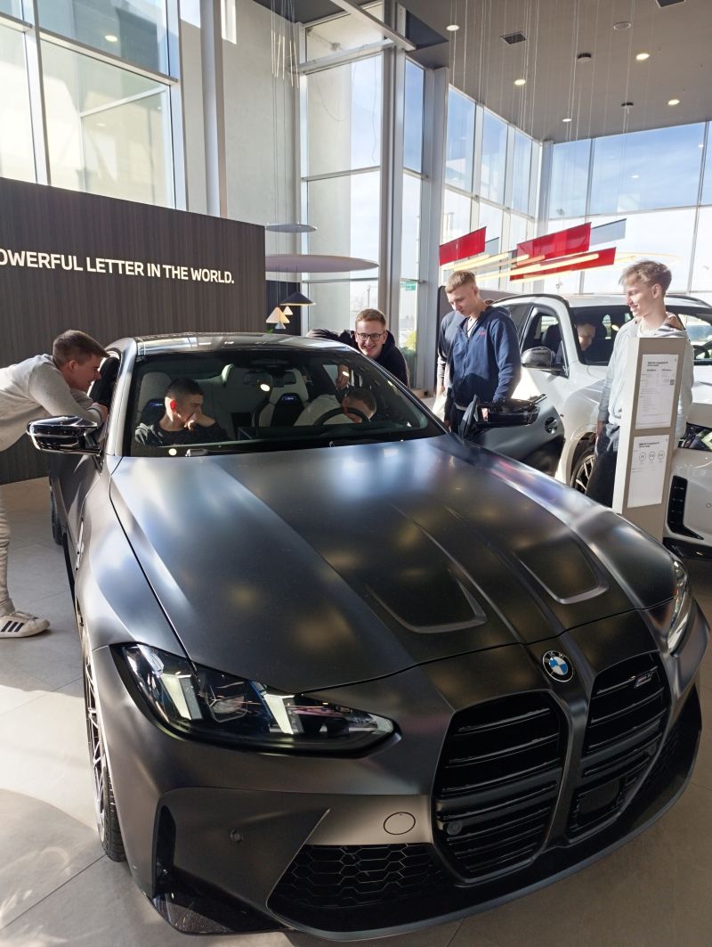 Naszą podróż rozpoczęliśmy od autoryzowanego salonu BMW - Dealer BMW Auto Fus Group Białystok. Najpierw zwiedzaliśmy część ekspozycyjną. Mieliśmy tam okazję zobaczyć najnowsze modele samochodów i motocykli, jak również innowacyjne samochody elektryczne. Pracownicy salonu w niezwykle ciekawy sposób opowiedzieli nam o systemach bezpieczeństwa i autonomicznej jazdy, napędach hybrydowych oraz elektrycznych. Ponadto dowiedzieliśmy się, że sprzedaż w salonach BMW opiera się na profesjonalnym doradztwie, obsłudze klienta klasy premium oraz kompleksowych usługach finansowych. Największą atrakcją jednak okazała się wizyta w strefie serwisowej. To tutaj uczniowie mogli zobaczyć, jak wygląda profesjonalna diagnostyka komputerowa i serwisowanie pojazdów klasy premium.