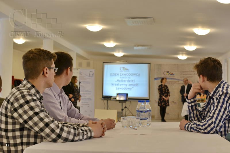 Prowadzący uroczystość pani Joanna Czembrowska - nauczyciel przedmiotów zawodowych ekonomicznych oraz pan Paweł Suchta - nauczyciel przedmiotów zawodowych elektrycznych zadbali o zdrową rywalizację między drużynami. Zadaniem uczestników konkursu było rozwiązywanie łamigłówek wymagających logicznego myślenia i kombinacji matematycznych, których autorem był pan Paweł Suchta. Najlepiej z zadaniami poradził sobie zespól reprezentujący technikum elektryczne, który tym samym zdobył tytuł „Najbardziej kreatywnego zespołu zawodowego”. Drugie miejsce uzyskał zespół z technikum logistycznego, trzecie miejsce zajął zespół z technikum pojazdów samochodowych.