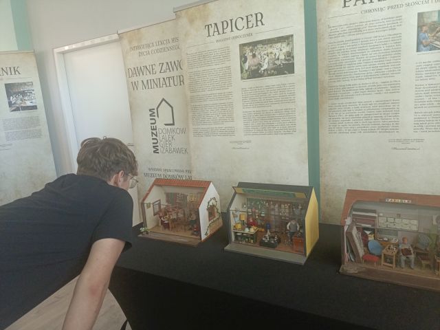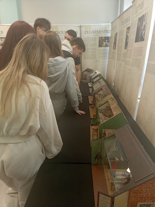 Inaugurację Ogólnopolskiego Tygodnia Kariery rozpoczęliśmy od zwiedzania wystawy tematycznej „Dawne zawody w miniaturze”, zorganizowanej przez Miejsko-Gminną Bibliotekę Publiczną im. C. Norwida w Wyszkowie. W dniu 20.10.2025r. uczniowie klasy 4 Technikum Logistycznego mieli okazję zobaczyć, jak zmieniały się role zawodowe, technologie i potrzeby społeczne, a tym samym zrozumieć ewolucję rynku pracy. To sprzyjało refleksji nad tym, jakie zawody mogą powstać w przyszłości i jakie umiejętności będą potrzebne. Miniaturowe przedstawienie zawodów ma nie tylko wymiar edukacyjny, ale i artystyczny. Zwiedzający mogli zobaczyć, że praca zawodowa to nie tylko obowiązki, ale też pasja, rzemiosło i twórczość — co motywuje do poszukiwania zawodów zgodnych z własnymi zainteresowaniami. Zwiedzanie wystawy wzbudziło wśród uczniów refleksję nad tożsamością zawodową. Porównanie dawnych zawodów z współczesnymi zachęciło zwiedzających do zastanowienia się:
